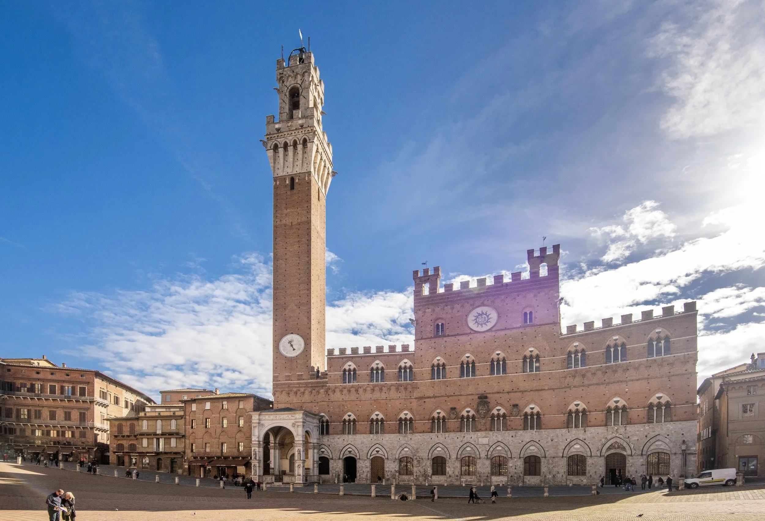 A long introduction, but needed to comprehend the following. In 1986, I traveled by car to Italy with friend Mariëlle. Our goal is Siena, which is said to be a beautiful medieval city. And it is! After some walking through the streets, we arrive at a very special square in the shape of a shell. It turns out to be the ‘most beautiful square in the world’, lucky us! The square slopes slightly downwards and is then intersected by an unusual building: the Palazzo Pubblico, Siena's old town hall.