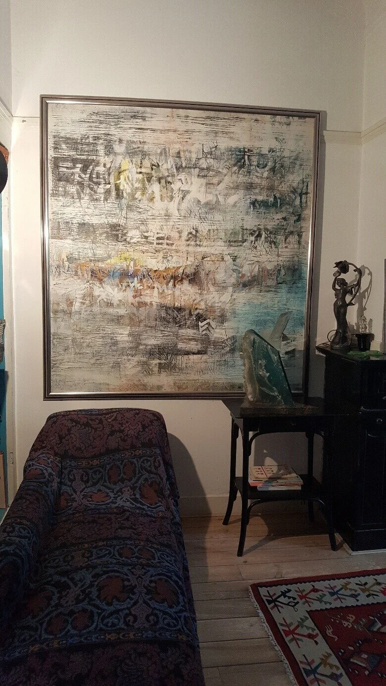 Maar textiel als wandtapijtkunst was besmet en werd beschouwd als tuttige vrouwenkunst. Er is in Nederland ook geen traditionele op de Franse en Vlaamse traditie gebaseerde, tapisserie-opleiding. En daardoor wilden galeries mijn werk niet eens zien. Dat was natuurlijk jammer voor mij maar werd wel een grote uitdaging voor mijn schilderkunst. Daar ben ik me toen helemaal op gaan richten. En het monumentale ben ik toen gaan oplossen door werken in series en delen te gaan maken. Wandkleden kon je oprollen om te vervoeren, schilderijen van 3x3 meter niet. Maar zo kon ik èn groot werken èn vervoeren. En toen vond ik mijn eerste serieuze galerie met een Française als eigenaar die veel contacten had op de Franse school in Den Haag. Via dat contact heb ik toen veel klanten gekregen, veel Fransen en andere buitenlanders. Zij voelden de emoties en de poëzie aan die in mijn werk zitten. En ineens begonnen galeries mij uit te nodigen voor beurzen.”