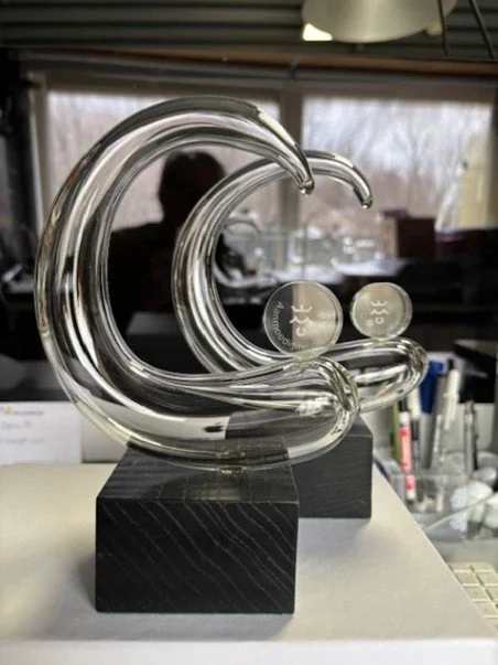 Glasobject, gemaakt door Ming Hou Chen voor de uitreiking van de Cultuurprijs Gemeente Leidschendam-Voorburg, september 2025