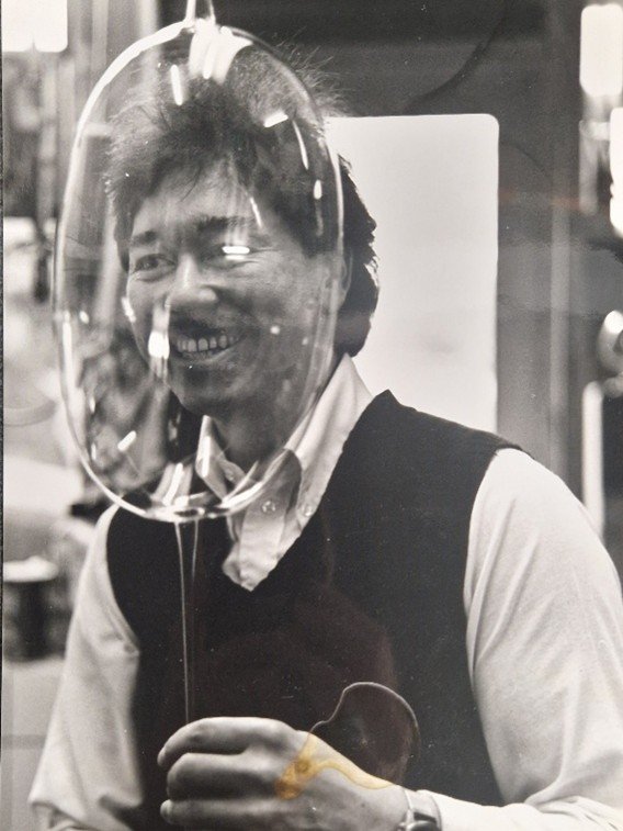 Ondertussen pakt Ming van alles aan glaswerk vanaf planken hoog tegen de muur. Objecten die hij gedurende zijn lange leven heeft gemaakt voor vele individuele opdrachtevers en bedrijven en instellingen. Zo maakt hij voor de Haagsche krant Courant relatiegeschenken en dat deed en doet hij ook nog steeds voor de Gemeente Leidschendam-Voorburg. Hij ontwerpt ook glasobject die als onderscheiding wordt uitgereikt, zoals in september jl. nog tijdens het Huygensfestival voor de Cultuurprijs van de gemeente Leidschendam-Voorburg, een jaarlijks terugkerende opdracht.