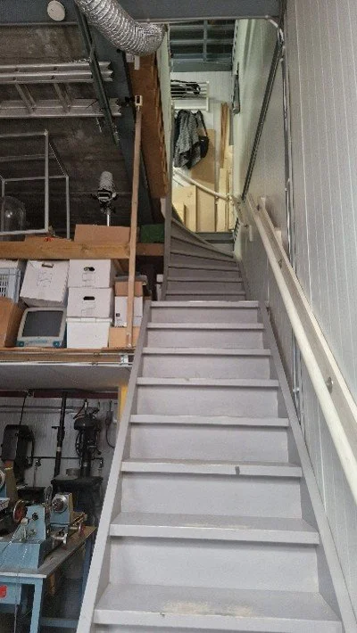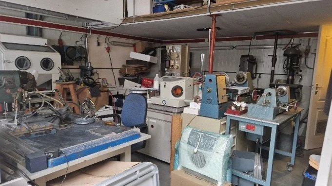 Ik kom binnen in een kleine ruimte die vol staat met apparaten en andere zaken - het glasatelier - om meteen twee trappen omhoog uit te komen in een werkplaats, ook vol met apparaten zoals een frees- en een boormachine. Daar starten we het gesprek. Ming (78) is driftig aan het opruimen en zal van alles tevoorschijn halen om zijn verhaal te illustreren.
