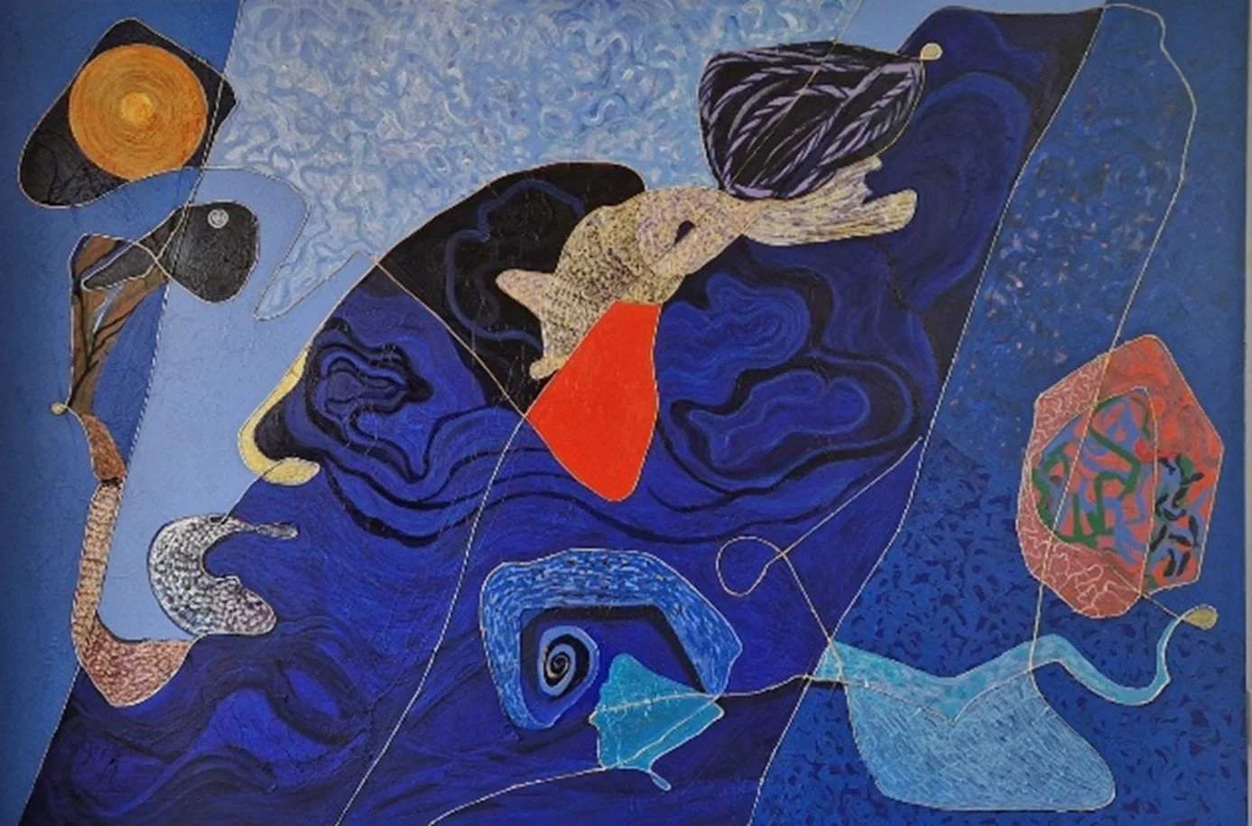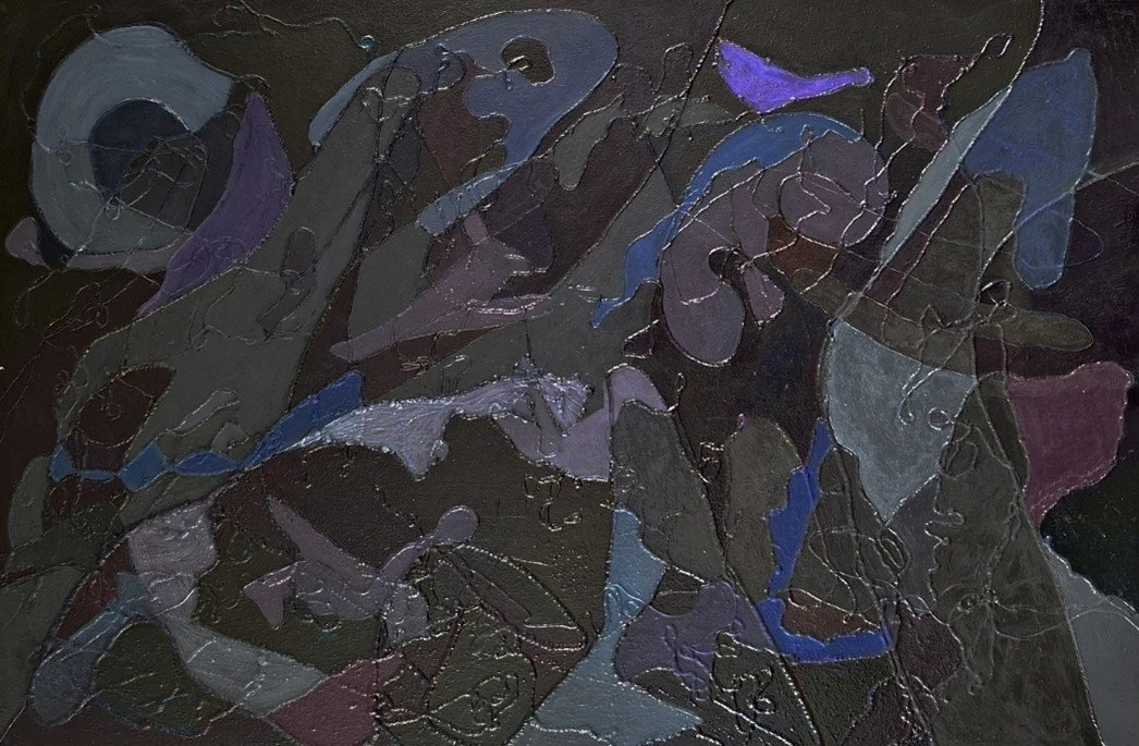 Nacht, 2022, acryl en draad op linnen, 180 x 120 cm. ‘Plat’ werk, met vormen uit de natuur (foto Pauline Vroom)