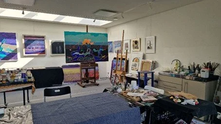 Impressie van het atelier met een werk waar Pauline nu aan bezig is.
