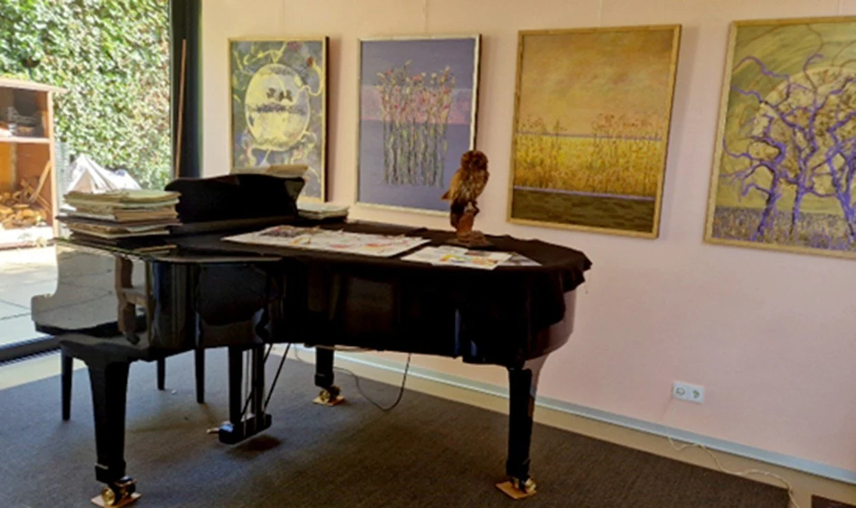 “Al jong vond ik het fijn om te tekenen en te schilderen. Dat ging door op de lagere en middelbare school maar ik had niet het idee om naar een kunstacademie te gaan. Ik wilde naar het conservatorium, want ik had ook een grote liefde voor de piano. Ik speel al piano vanaf de vijfde klas lagere school, vandaar de vleugel in de woonkamer. Op mijn vijftiende nam ik er orgelles bij. Ik vond dat je op de piano te veel kon uitweiden en had behoefte aan strakker en droger spel, denk daarbij aan Bach’s muziek. Ik ging extra oefenen voor de toelating tot het conservatorium maar merkte al gauw dat mijn lijf daar toch niet geschikt voor was: na 1,5 uur oefenen kreeg ik al last van mijn schouder.”