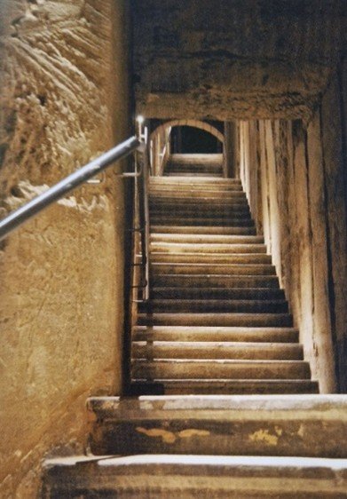 De lange trap naar de ondergrondse gewelven van het Museum Romeinse Katakomben in Valkenburg (foto publicatie Paul Post, p. 15)