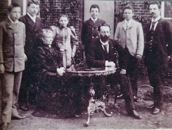 Familie Diepen in Tilburg rond 1890: Armand Diepen met zijn vrouw en zes kinderen. Jan Diepen, helemaal rechts (foto publicatie Paul Post, p. 20)