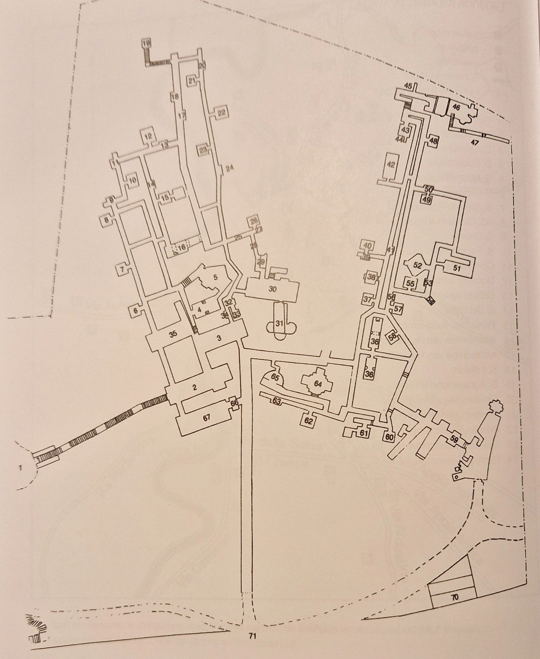 Plattegrond van de Romeinse Katakomben in Valkenburg, met links de eerste en rechts de tweede fase